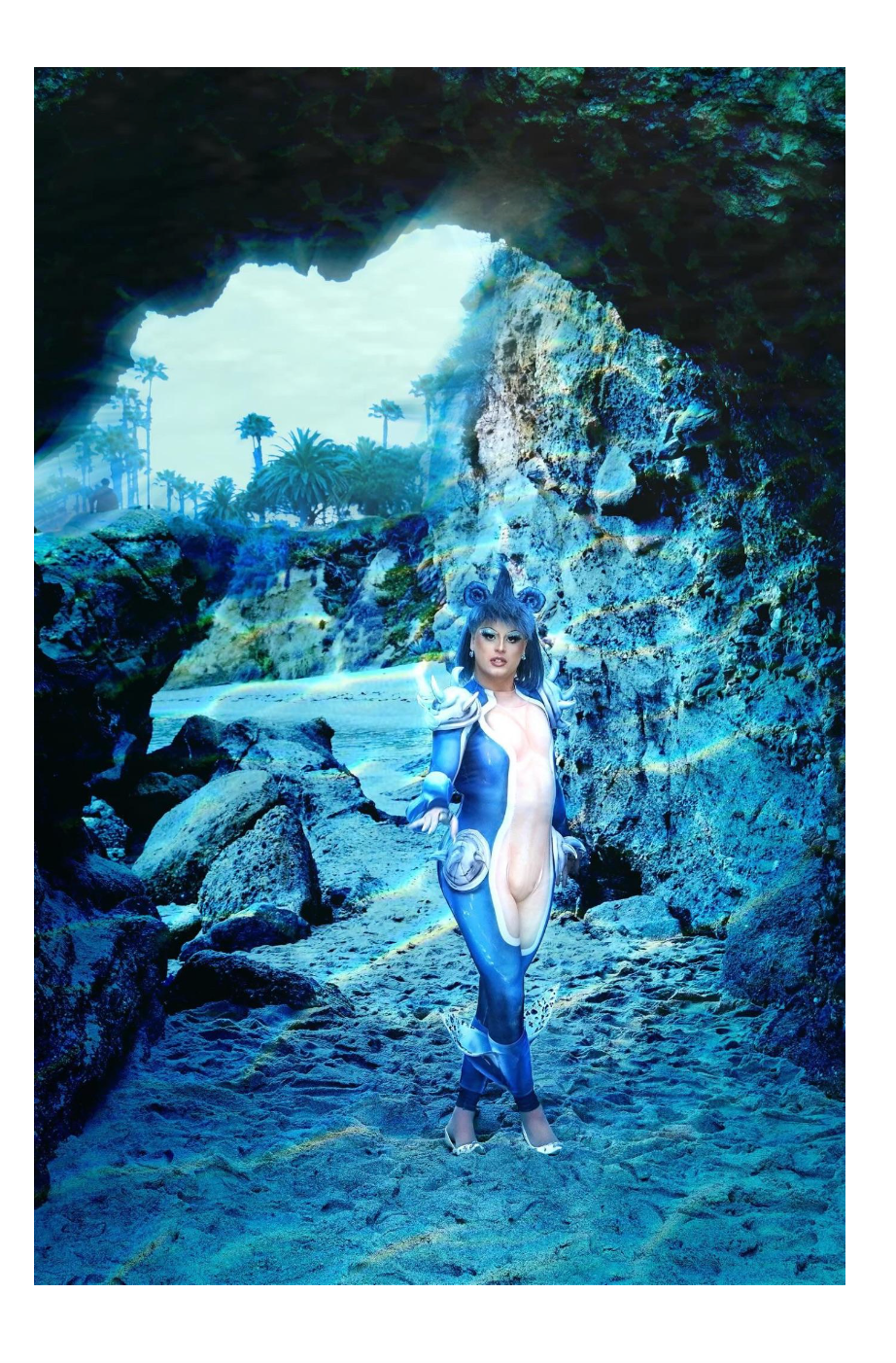 Shot in breathtaking Laguna Beach, this look is airbrushed from head to toe and takes inspiration from the Pokémon Lapras. C'mon heels on the beach!